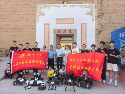 活动伊始,科普教育基地便成了一片欢乐的海洋。福大师生们展示了自主研发的RoboMaster机器人和无人机等科技装备,瞬间吸引了众多孩子和家长的目光,本次活动为乡村青少年带来了前沿的科技体验。