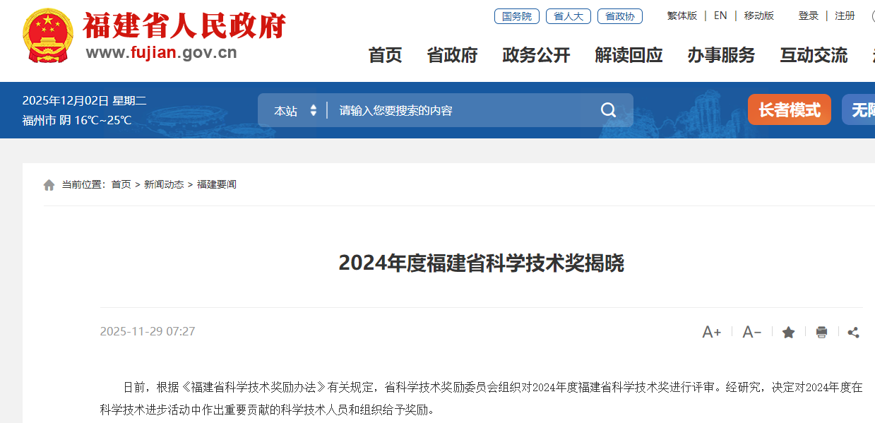近日,福建省人民政府公布了2024年度福建省科学技术奖获奖结果,欧冠直播
