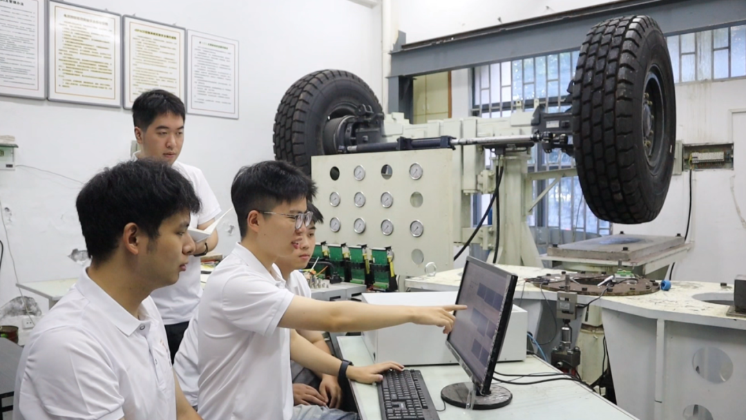 经过数百个日夜的坚守,团队先后攻克了“可实时解算的闭环感知”“可拓展模块化转向轴精准控制”“可分布式计算的底盘域变轴协调行驶”三大核心技术,研发出的智能轴模块可根据运输需求,行驶状态监测响应从秒级进入毫秒级,单轴独立转向精度提升60%,整车转场效率提升66.7%,关键技术达国际领先水平。当这项技术第一次在合作企业的多轴运载车上展示时,企业负责人激动地说:“以前满载240吨的9轴运载车在路窄急弯多的山路中要很长时间,现在转场效率提升了2/3!”